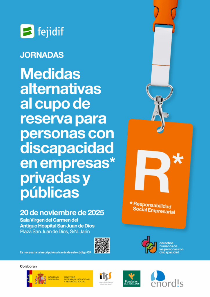 Las Jornadas realizadas en colaboración entre el ITSS y FEJIDIF, sobre las medidas alternativas al cupo de reserva para personas con discapacidad en empresas privadas, se enmarcarán en la normativa de la Ley General de Discapacidad (LGD). Se detallarán las opciones excepcionales para las empresas públicas y privadas que no puedan cumplir esta obligación, con la finalidad de mejorar los indicadores de inserción laboral de personas con discapacidad de la provincia de Jaén.